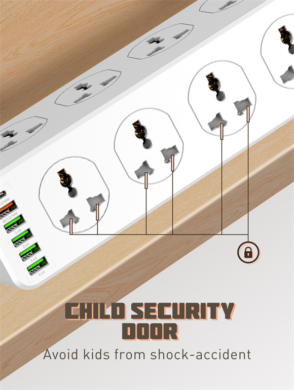 *2M heavy-duty power cord can flow optimal power to connected devices.Simultaneouslyย helpsย to protect multiple-electronic devicesย whileย accommodating large adapters.